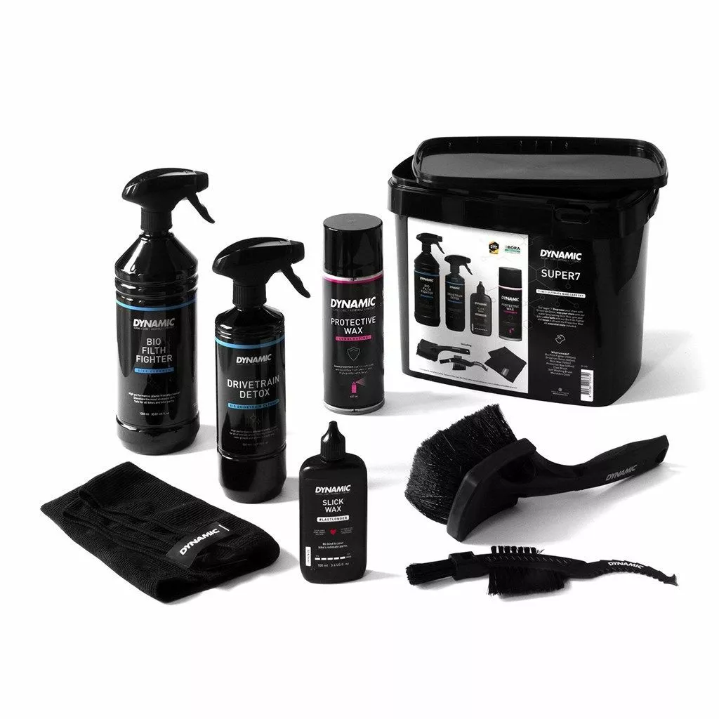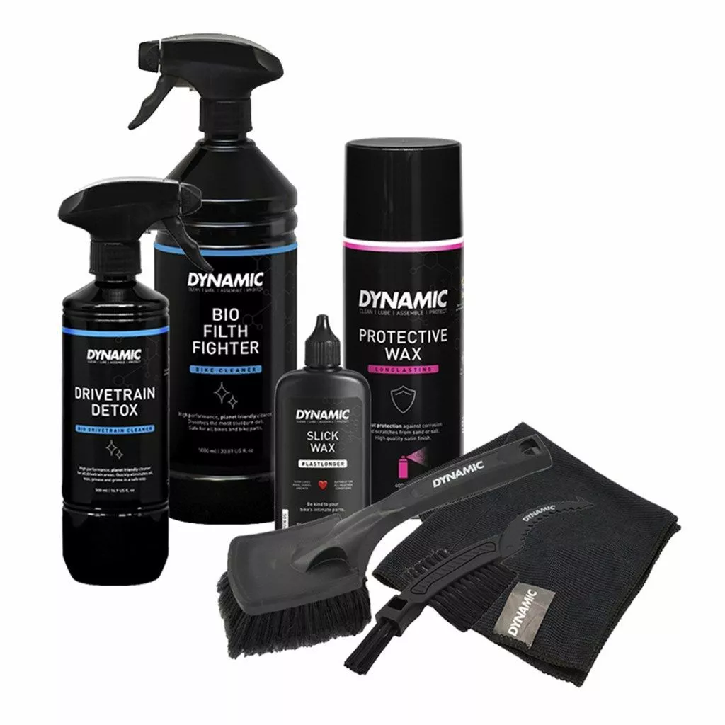 – Die ultimative Fahrradpflegebox. Bio Filth Fighter (1000ml), Drivetrain Detox (500ml), Slick Wax (100ml), Protective Wax (400ml), Claw Brush, Soft Washing Brush, Microfibre Cloth